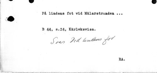 //// På lindens fot vid Mälarstranden ••• //// i //// B 44t s.24> Kärleksvisa. //// • • //// r //// / //// RA. ////