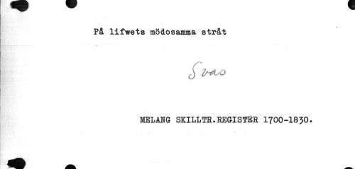 //// På lifwets mödosamma stråt //// '.V- ' • //// J ^ VO //// MELANG SKILLTR.REGISTER I7OO-I83O. //// • » - 1 ? ////