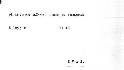 //// PÅ LONDONS SLÄTTER BODDE EN ADELSMAN //// E 1893 r Ra 16 //// S V A S. ////
