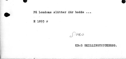 //// ^^ På Londons slätter där bodde • * • //// E 1893 r //// s //// KB:S SKILLINGTRY CKSRE G. ////