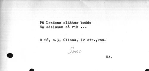 //// WM //// ... //// På Londons slätter bodde En adelsman så rik • »» //// B 26, s#3f Oliana, 12 str»,kom. ^P RA. ////