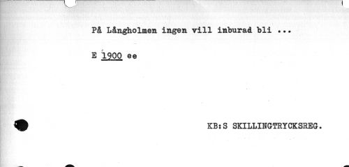 //// På Långholmen ingen vill inburad bli ... E 1900 ee //// KB:S SKILLINGTRYCKSREG. //// ? ** * * ////