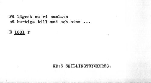 //// På lägret nu vi samlats så hurtiga till mod och sinn ... //// E 1881 f //// KBsS SKILLINGTRYCKSREG. //// i ////