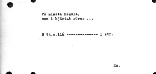 //// På minsta känsla, som i hjärtat röres ... //// B 94,s. 116---1 str. //// « //// RA. ////