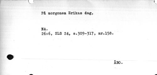 //// På morgonen Erikas dag, NA. //// 26:6, SLS 24» s.309-317, nr.158. //// » / //// i . ~ Ibo. ////