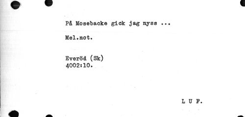 //// På Mosebacke gick jag nyss ... Mel.not. //// Everöd (Sk) 4002:10. //// LO. ////