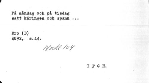 //// På måndag och på tisdag satt käringen och spann • •. //// Bro (B) //// 4892, 8.44* //// /y1^/of //// IFSI. //// i i //// k ////