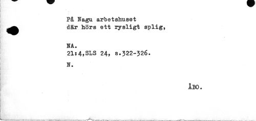 //// , } //// På Nagu arbetshuset //// där hörs ett rysligt splig, //// KA. //// 21:4»SLS 24, s.322-326. N. //// ÅBO. ////