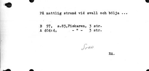 //// På nattlig strand vid svall och hölja B 97, s.83,Fiskaren, 3 str. //// A 404$4, - M - 3 str. //// 4 //// RA. ////
