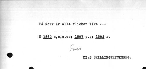 //// På Norr är alla flickor lika ... //// v //// E 1862 s,x,z,ee; 1865 p,q; 1864 r, //// ^ KBjS SKILLINGTRYCKSESG. ////