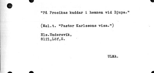 //// r,På Prosikas kuddar i hemnen vid Djupa»11 //// t //// (Mel.t. "Pastor Karlssons visa.11) Hls.Undersvik, //// 8121,Löf,E. //// ULMA. //// i ////
