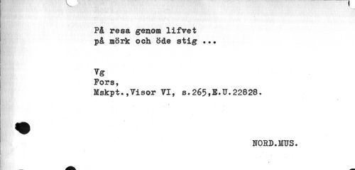 //// På resa genom lifre t på mörk och öde stig •. • //// Vg //// Pors, //// Mskpt.,Visor VI, s.265,E.U.22828. //// NOHD.MUS. ////