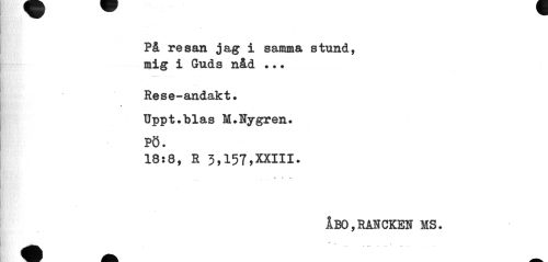 //// På resan jag i samma stund, mig i Guds nåd .•. //// Rese-andakt. TJppt.fclas M.Hygren. Pö. //// 18:8, r 3,157,xxiii. //// » * r- //// 1bo,rmcken ms. ////