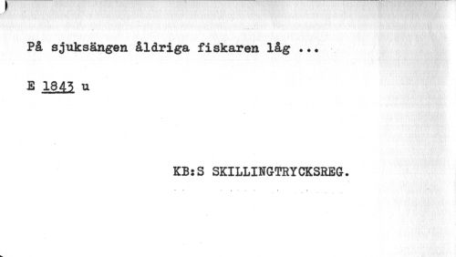 //// På sjuksängen åldriga fiskaren låg ... //// E 1843 u //// KB:S SKILLIUGTRYCKSREG. //// • i- : i • . ... r. i » ////