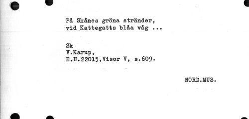 //// B ^^^ //// i //// På Skånes gröna stränder, vid Kattegatts blåa våg //// t //// Sk //// » //// V.Karup, //// E.U.22015,Visor V, s.609. //// NORD.MUS. ////