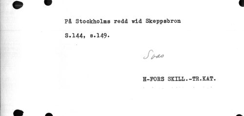 //// På Stockholms redd wid Skeppsbron //// S.144, s.149* //// J //// H-POES SKILL.-TR.KAT. //// h .1 t » ////