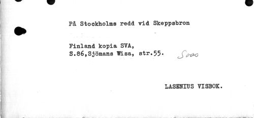 //// På Stockholms redd vid Skeppsbron //// fl wk //// Finland kopia STA, //// S.86,Sjömans Wisa, str.55. //// LASENIUS VISBOK. ////