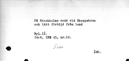 //// - //// ¦ //// ¦ //// B -- ¦ ... ...- //// • - - , . « . , 'ja, l , l - » . t U4 . ...4 . i;. * * //// På Stockholms redd vid Skeppsbron och lätt förtöjd från land //// • — -VJ //// K //// Eyl.IÅ. //// 34*8, INE 45, nr.10. ^ ÅBO. ////