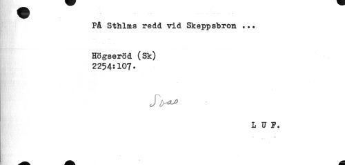 //// På Sthlms redd vid Skeppsbron ••• Högseröd (Sk) //// 2254:107» //// j //// LUP. ////