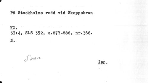 //// På Stockholms redd vid Skeppsbron KO. //// 33s4, SLS 352, s.877-886, nr.366. N. //// Slr*^ f //// ÅBO. //// 1 //// k ////