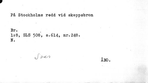//// På Stockholms redd vid skeppsbron B r. //// 1:8, SLS 508, s.614, nr.248. N. //// i». //// M. //// « ////