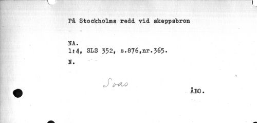//// •. //// På Stockholms redd vid skeppsbron NA. //// 1:4, SLS 352, s.876,nr.365. //// N. //// K //// S lr<w> ^ //// X ////