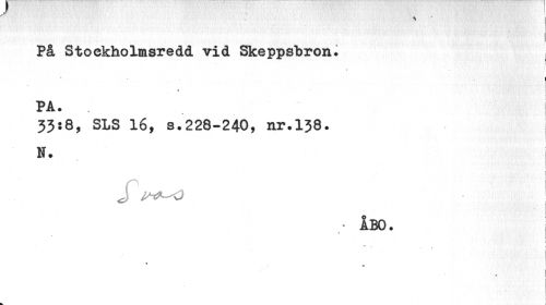//// N I //// På Stoekholmsredd vid Skeppsbron* //// r //// PA. //// 33:8, SLS 16, s.228-240, nr.138. N. //// I ! 1 //// J I //// • ÅBO. //// I //// 1 I ////