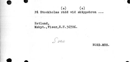 //// (e) (e) //// På Stockholms rädd vid skäppsbron //// Estland, //// Mskpt. ,Tisor,E.IT. 36706. //// » //// j ^ //// NORD.MUS. ////