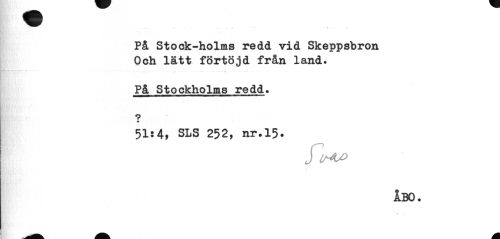//// På Stock-holms redd vid Skeppsbron Och lätt förtöjd från land. //// På Stockholms redd. //// 9 //// 51:4, SLS 252, nr.15. //// J //// ÅBO. ////