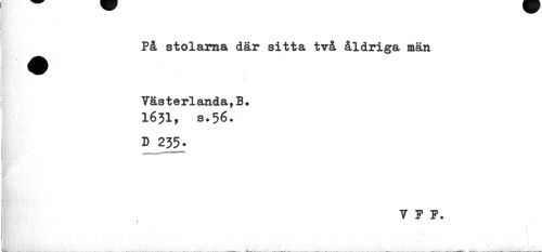 //// På stolarna där sitta två åldriga män Vasterlanda,B* //// 1631, s.56- //// « //// D 235» //// ¦ //// — //// »fe:. //// T P ////