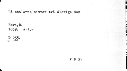 //// I //// På stolarna sitter två åldriga män //// i //// f- //// Bäve,B. | //// 1039, s.15. | //// D 235• F //// I— //// | //// V F F. | //// I //// k ////