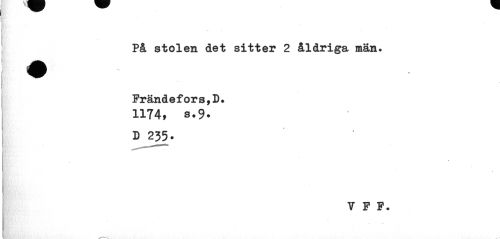 //// På stolen det sitter 2 åldriga män. Frändefors,D. //// 1174, s.9* //// D 235 • //// ¦ //// V P P. //// [V® . //// 1 É ////