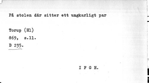 //// På stolen där sitter ett ungkarligt par L //// i //// r //// forup (Hl) //// y //// 869» s.U. D 235. //// t //// I F G H. j //// i i ////