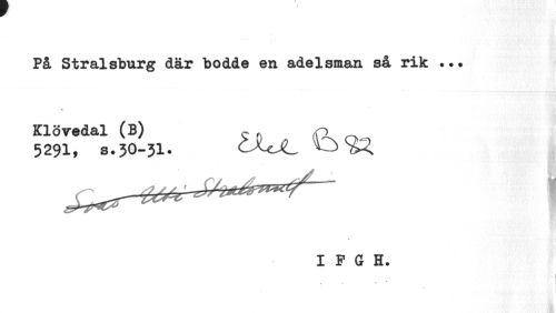 //// På Stralslmrg där bodde en adelsman så rik ... Klövedal (B) c , ,r> //// 5291, s. 30-31. IXdL //// I F G H. //// T " ////