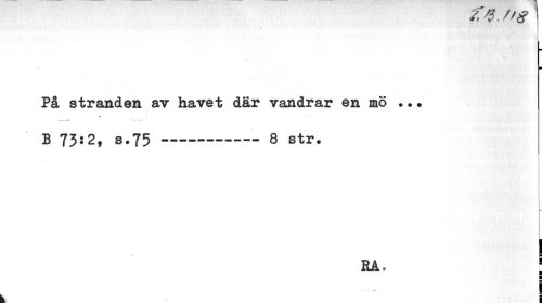 //// t //// ¦ //// På stranden av havet där vandrar en mö ••• B 73:2, s.75--- 8 str. //// i //// RA * [ ////