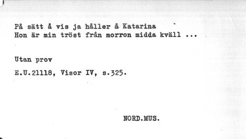 //// På sätt å vis ja håller å Katarina Hon är min tröst från morron midda kväll //// Utan prov //// E.U.21118, Visor IT, s*325. //// NORD.MUS. //// % ////