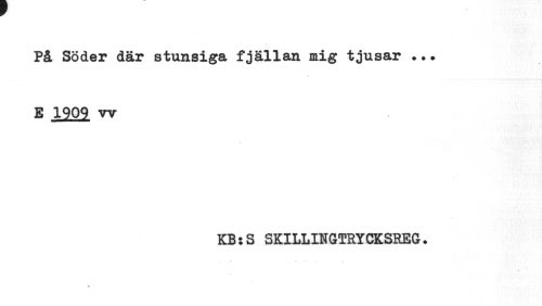//// På Söder där stunsiga fjällan mig tjusar //// E 1909 vt //// KB:S SKILLINGTRYCKSREG• ////
