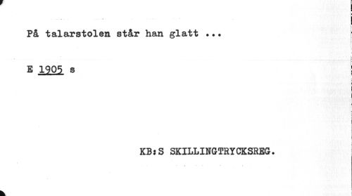 //// . //// ¦ //// I //// På talarstolen står han glatt ... //// C ! //// E 1905 s | //// = //// c 1 //// t //// i i //// i //// i //// KB:S SKILLINGTRYCKSREG. //// . T I //// k ////