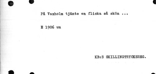 //// * //// På Vaxholm tjänte en flicka så skön ••• E 1906 uu //// KB s S SKILLINGTRYCKSREG• //// 1 //// ... ////