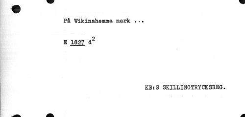 //// På Wikinahemma mark •.• //// • .Uk //// E 1827 d2 //// V //// KB: S SKILLIHGTRYCKSREG. //// r •» r i ////