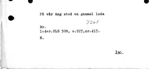 //// ¦ //// . //// På vår äng stod en gammal lada //// j //// Br. //// l:4+r.SLS 508, s.927,nr*417. //// H. //// ÅBO. ////