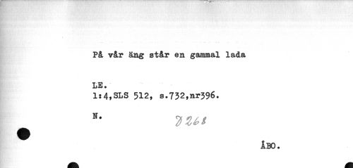 //// ; * //// _ //// På vår äng står en gammal lada LE. //// ls4,SLS 512, s.752,nr396. //// JU* //// ÅBO. ////