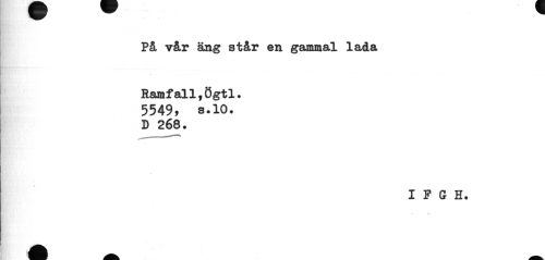 //// På vår äng står en gammal lada //// Ramfall,Ögtl. //// 5549, s.10. B 268. //// I P G H. ////