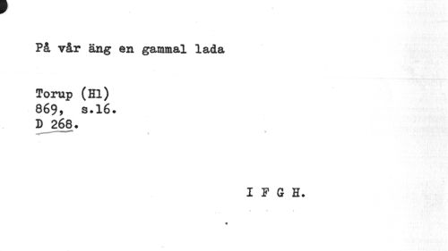 //// r. //// På vår äng en gammal lada //// Torup (Hl) 869, s.16. D 268. //// . •'Hri //// IPGI. ////