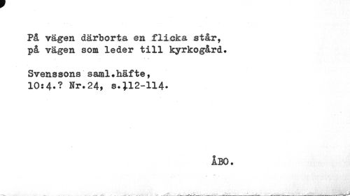 //// På vägen därborta en flicka står, på vägen som leder till kyrkogård. //// ' -v //// Svenssons saml.häfte, //// 10:4.? Nr.24, 0.J.12-U4* //// ÅBO. //// i ' V • ^ ////