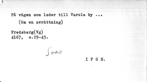 //// På vägen som leder till Varola by ? ? ? \ //// (Om en avrättning) //// i f //// Fredsberg(Vg) //// 4167, s.29-43- //// ! //// J t h*>0 //// 1 F G H. //// .9 //// c //// i ////