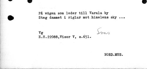 //// På vägen som leder till Varala by ^^ Steg dammet i riglar mot himelens sky .•• //// Vg //// E.1.22088,Visor V, s.651. //// HORD.MUS. ////