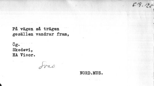 //// i i //// På vägen så trägen gesällen vandrar fram, //// Ög. //// Skedevi, HA Visor. //// HORD.MUS. //// k ////