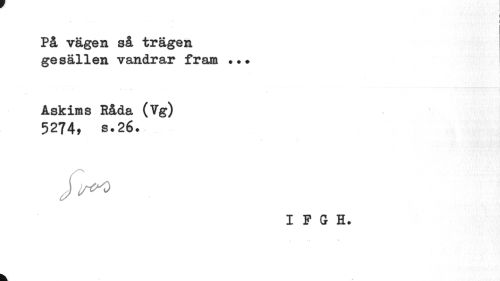 //// I //// I //// I //// På vägen så trägen gesällen vandrar fram ... //// Askims Råda (Vg) 5274, s.26. //// I P G H. //// -X " > //// k ////