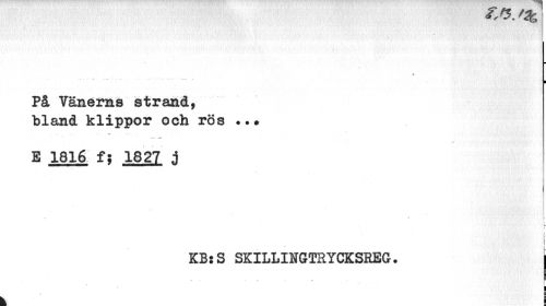 //// • ¦ I //// På Vänerns strand, bland klippor och rös //// 4 , • — S/ - . " //// . SM //// E 1816 f; 1827 j //// i //// j //// I //// KBsS SKILLINGTRYCKSREG. j //// ! ¦ //// k I ////